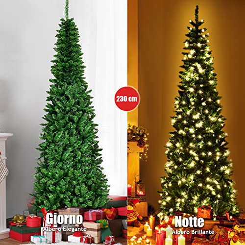 DREAMADE Albero di Natale, Artificiale Illuminato, Albero di Natale Illuminato in PVC, con Luce LED e Supporto in Metallo, Verde (230 cm)