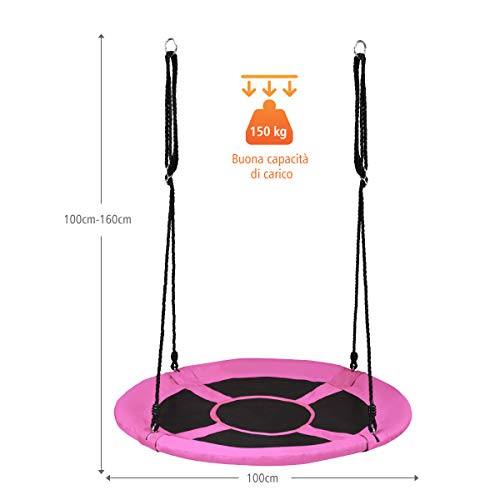 DREAMADE Altalena a Nido Rotondo, Altalena da Giardino per Bambini/Adulti, Altezza Regolabile 100-160 cm, Grande Sedile Diametro 100cm, Carico 150 kg,Telaio in Metallo,per Interno/Esterno (Rosa)