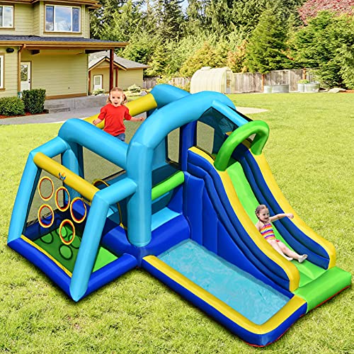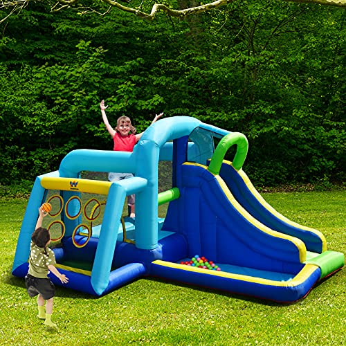 Disegn 5 in 1 - Questo castello gonfiabile è 5 in 1. Con questo grande castello gonfiabile, i bimbi possono giocare con l'acqua o giocare con le palline nella piscina, impegnarsi a scalare, giocare con lo scivolo, esercitarsi a lanciare le palle e saltare facilmente sul trampolino. I bambini possono divertirsi tantissimo con questo castello.