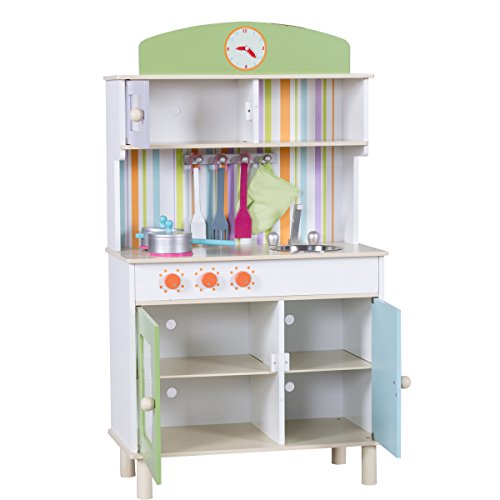 Resistente - La cucina per bambini è realizzata in MDF e pino rivestiti con vernice ecologica, essa è resistente ai graffi, può essere utilizzata a lungo. Le 4 gambe offrono una maggior stabilità.