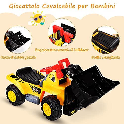 DREAMADE Escavatore Cavalcabile per Bambini, Macchina Scavatrice con Audio per Bambini di età 3 +, Scavatore con Quattro Ruote per Giocare a Sabbia, 85x45x30 cm