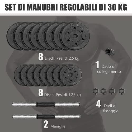 DREAMADE Kit Manubri e Bilanciere da Fitness, Set Manubri e Bilanciere Bodybuilding, Pesi Allenamento per Palestra e Casa, 8 x 2,5 kg, 8 x 1,25 kg, Nero