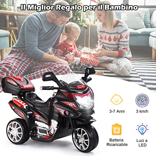 DREAMADE Moto Elettrica per Bambini, Motocicletta Ricaricabile a 3 Ruote con Carico di 25 kg, Triciclo Cavalcabile, Motociclo Multifunzionale con Luci e Musica, 82x36x52,5cm (Nero)