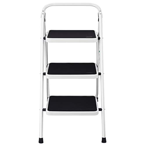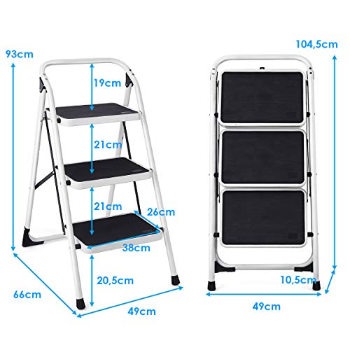DREAMADE Scale Pieghevole, Scaletta Pieghevole con 3 Gradini, Scala a Libro Pieghevole Antiscivolo con Pratico Corrimano, Gradino Pieghevole in Metallo, per Garage, Cucina, Soggiorno, Carico 150 kg