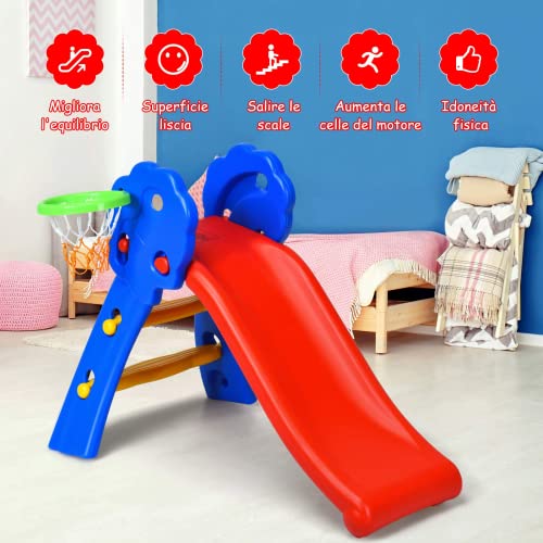 DREAMADE Scivolo Pieghevole per Bambini con Ampi Braccioli, Scivolo da Giardino per Bambini con Corrimano Alto, Scivolo in Plastica Sicura per Arrampicarsi (Con Cestino)
