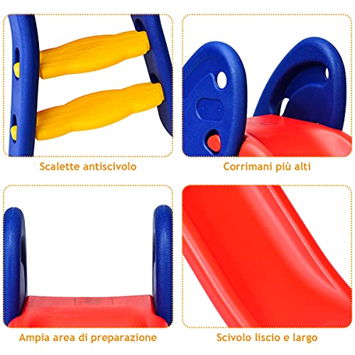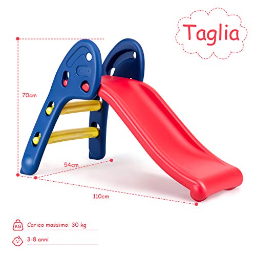 Design Pieghevole e Montaggio Facile - Il design pieghevole facilita la conservazione dello scivolo. Se non utilizzi lo scivolo per bambini, puoi piegarlo per occupare meno spazio. È inoltre accompagnato da istruzioni dettagliate per facilitare il montaggio.