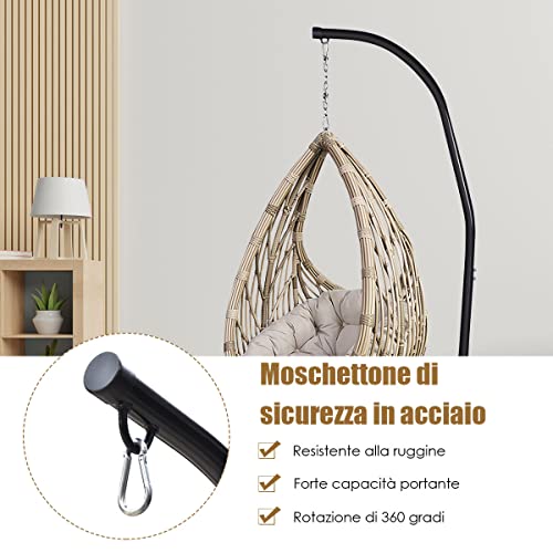 Alta qualità - Il supporto della sedia sospesa è realizzato in tubo di acciaio con vernice nera sulla superficie, anticorrosione, antiruggine e impermeabile, e la capacità portante è fino a 150 kg.