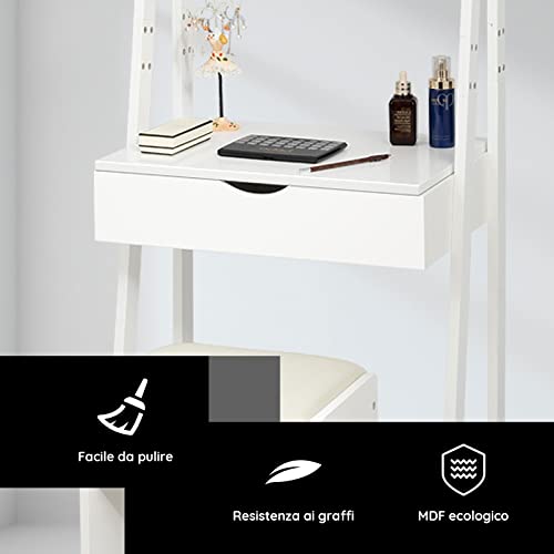 Disegno pratico - Il mobile da toeletta con sgabello è un mobile essenziale nella camera da letto e la spessa seduta in spugna è comoda e morbida per un'esperienza confortevole, le gambe del tavolo e dello sgabello hanno piedini antiscivolo per una maggiore stabilità e per evitare di graffiare il pavimento.
