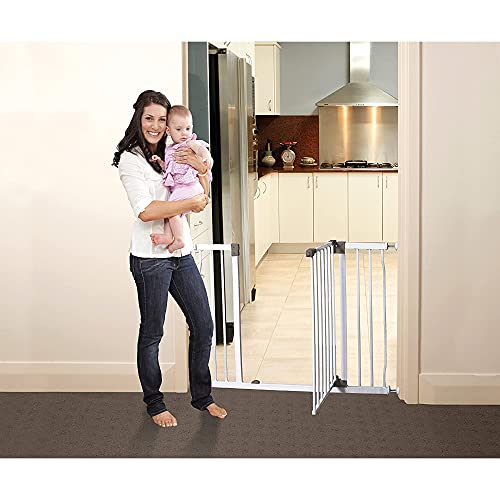 VERSATILE E AFFIDABILE: Nostra Barriera DreamBaby Liberty non solo è dotata di caratteristiche per contribuire a rendere la vita più facile, ma anche più sicuro. Versatile, adatto per aperture da 99 a 106 cm di larghezza e 76 cm di altezza. Utilizzando estensioni aggiuntive vendute separatamente, la barriera può estendersi fino a 306 cm.
