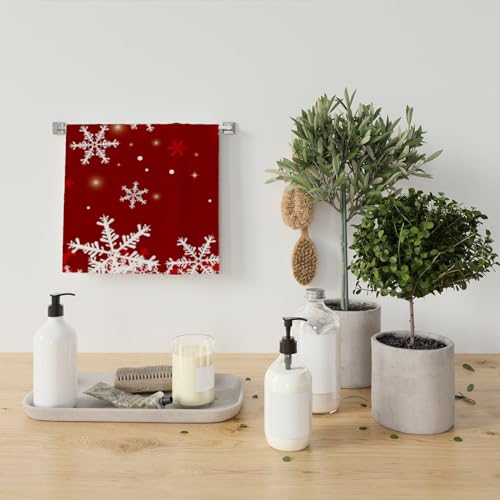 DreamBay Set di 2 asciugamani per Natale, Capodanno, inverno, stelle rosse, fiocchi di neve, asciugamani per le mani, asciugamani per le dita, asciugamani per il viso, cucina, bagno