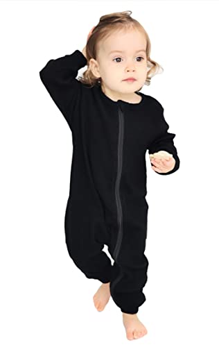 DreamBuy 0-3A Tutina con Cerniera Tutina A Coste in Morbido Cotone Neonati Maschi Pagliaccetti Unisex Tuta Pigiama Bambini Tutina Footed Ipoallergenico (12-18 Mesi, Nero)