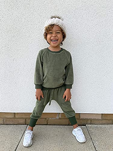 DreamBuy Tuta per bambini - 2 pezzi Tuta per ragazzi e ragazze - Morbido cotone in spugna(Cachi, 1-2Y)