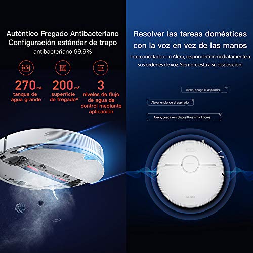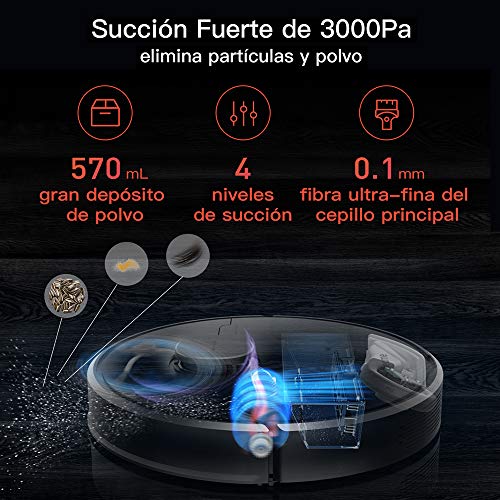 【Nuovo Algoritmo SLAM Intelligente】 Il nuovo algoritmo SLAM ha una superpotenza di calcolo, può individuare la posizione precisa del robot in tempo reale e creare rapidamente mappe, disegnare in modo intelligente il percorso di lavoro e migliorare l'efficienza del lavoro. Supporta google home, alexa e altre applicazioni.