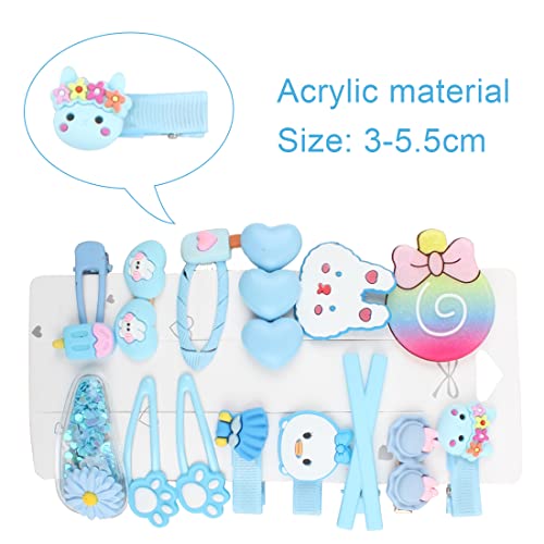 Dreamle Set di 14 fermagli per capelli per bambini, fermagli per capelli per bambine, fermagli per capelli con motivi carini, blu chiaro, regalo per donne e ragazze