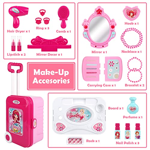 Dreamon Kit di Bellezza Tavolino di Trucco in Valigia Gioco di 3 in 1 Ruolo Accessori Specchio con Luci Suoni Regalo per Bambini