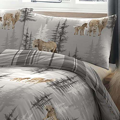 Dreams & Drapes Lodge - Set copripiumino per letto matrimoniale, 100% cotone spazzolato, colore: antracite