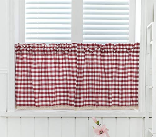 Dreamskull - Set di 2 tende da cucina corte in stile rustico, tende a pannello, tende coprenti, tende bistrò, corte, alla moda, vintage, a quadretti, 2 tende da 74 x 90 cm, colore rosso