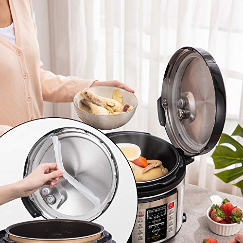 Anelli di tenuta in silicone: il silicone alimentare conforme alla FDA è la materia prima primaria che non pone alcun danno all'ambiente. Diametro interno 22,1 cm, diametro esterno 24,1 cm. Utilizzare per pentole istantanee da 5 e 6 litri.