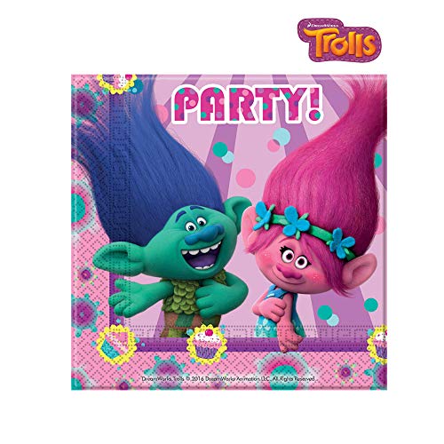 Dreamworks BPWFA - 16 tazze, 16 piatti di carta, 16 tovaglioli e 1 tovaglia del cast dei Trolls