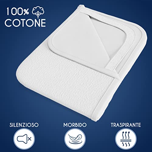 COPRIMATERASSO 100% IMPERMEABILE E TRASPIRANTE - Il coprimaterasso è impermeabile per combattere l'umidità, la polvere, le macchie di sudore, di urina, e altri liquidi: Mantenete il vostro materasso pulito più a lungo e risparmiate nel lungo period. 70 x 140 cm si riferiscono alle dimensioni del materasso, le dimensioni del rivestimento possono variare di qualche centimetro per adattarsi meglio al cuscino.