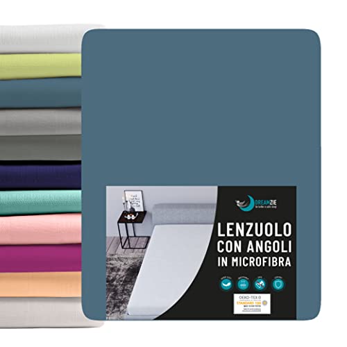 Dreamzie Lenzuolo Con Angoli - 180x200 - Microfibra Oeko Tex certificato - Blu Ceruleo - Lenzuolo con Angoli Matrimoniale 180x200