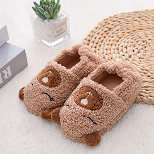 DRECAGE Pantofole Peluche Ragazzi Ragazze Inverno Ciabatte Animali Dinosauro Scarpe da Casa Antiscivolo per Bambino Gr.20-31 Marrone 28/29 EU(Dimensioni dell'Etichetta 210)