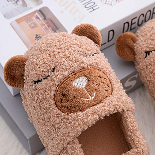 DRECAGE Pantofole Peluche Ragazzi Ragazze Inverno Ciabatte Animali Dinosauro Scarpe da Casa Antiscivolo per Bambino Gr.20-31 Marrone 22/23 EU(Dimensioni dell'Etichetta 16-17)