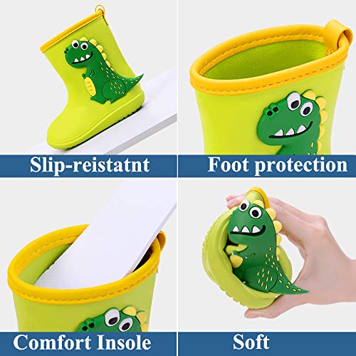 DRECAGE Stivali Bambino e Bambina Ragazzo e Ragazza in Eva Stivali da Pioggia Dinosauro Unisex Antiscivolo
