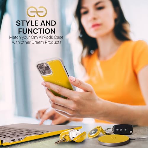 Dreem Om AirPods Pro 2 Custodia in pelle vegana - Compatibile con auricolari wireless Bluetooth Apple per iPhone - Giallo