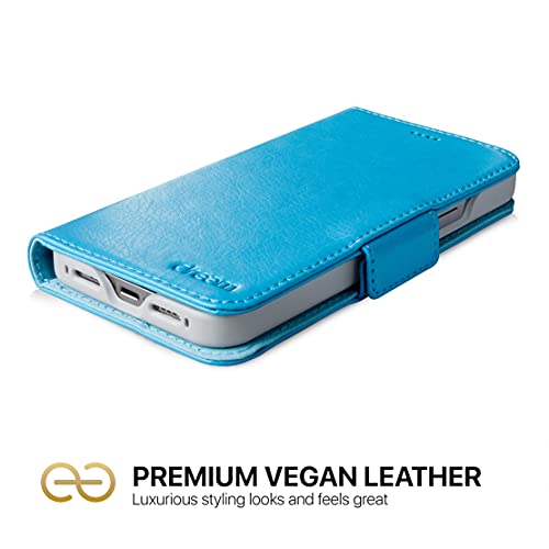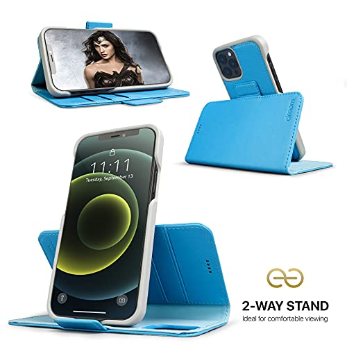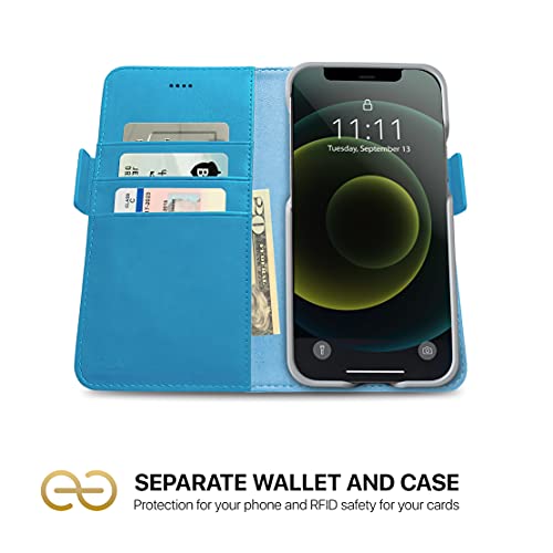 Dreem Fibonacci 2in1 Custodia Portafoglio in Pelle per iPhone 12 Mini | Cover iPhone Magnetica Antiurto TPU Sottile | Protezione RFID | 2 Posizioni | Confezione Regalo - Azzurro