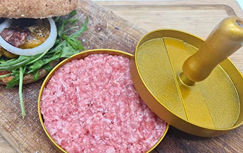 Dreiklang - be smart Hamburger Hamburger Pressa per hamburger in alluminio pressofuso con rivestimento antiaderente, manico in legno dorato, senza plastica