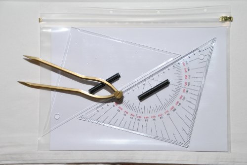 DreiMaster - Set di strumenti per navigazione, compasso + 2 squadre + custodia