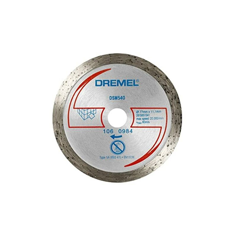 DREMEL - DISCO DA TAGLIO DIAMANTATO PER TAGLIO PIASTRELLE ART. DSM540 è un disco abrasivo diamantato studiato per tagliare materiali duri quali marmo, calcestruzzo, mattone, porcellana e piastrelle in ceramica.