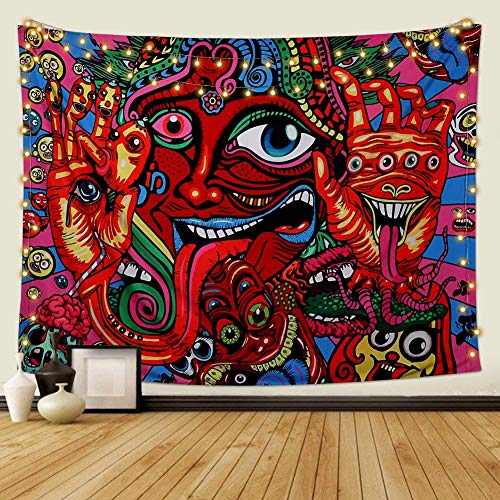 Design elegante: arazzo arabesco psichedelico progettato con una linguetta colorata e magica del viso, l'immagine chiaramente, utilizzare questo arazzo hippie nella tua stanza, renderà la tua stanza piena di misteriose.