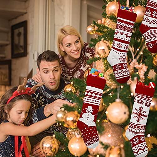 Dimensioni: confezione da 4 calze di Natale personalizzate, dimensioni: 45,7 cm di lunghezza, larghezza: 15,1 cm, con motivi a maglia ha una tasca abbastanza grande per i regali di Natale. Bianco e rosso sono molto popolari per il Natale.