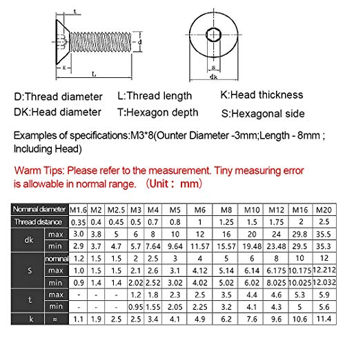 Dreneco Viti a Brugola a Testa Svasata, Bulloni a Testa Piatta Ad Alta Resistenza, M4×25mm,20 pz