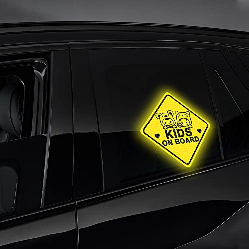 Dreothy 2 adesivi riflettenti in vinile per bambini a bordo, simpatici ragazzi e ragazze per bambini a bordo, adesivi per finestre di avvertenza di sicurezza per auto, SUV, auto e paraurti (giallo)