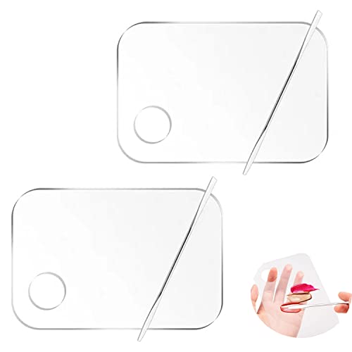 DRERIO 2 palette trasparenti per il trucco e spatola, piccola tavolozza di trucco in acrilico, tavolozza per cosmetici portatile con spatola per nail art ombretti rossetti miscelazione di strumenti