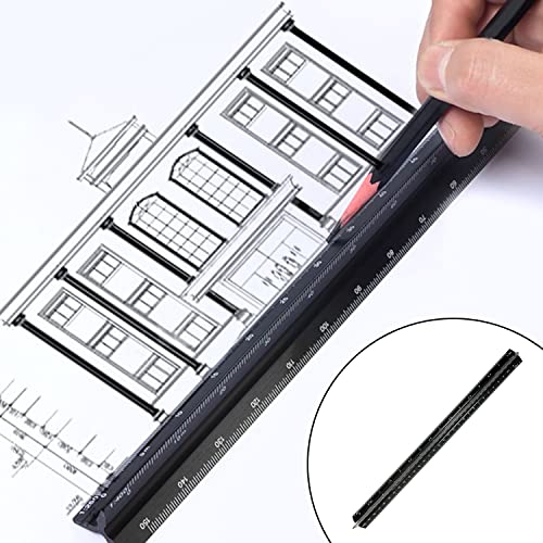 DRERIO Righello in scala Architetti Righello Righello in metallo Righello per ingegneri Righello in metallo di precisione Righello in scala triangolare 6 rapporti Strumenti di disegno Righello 30 cm
