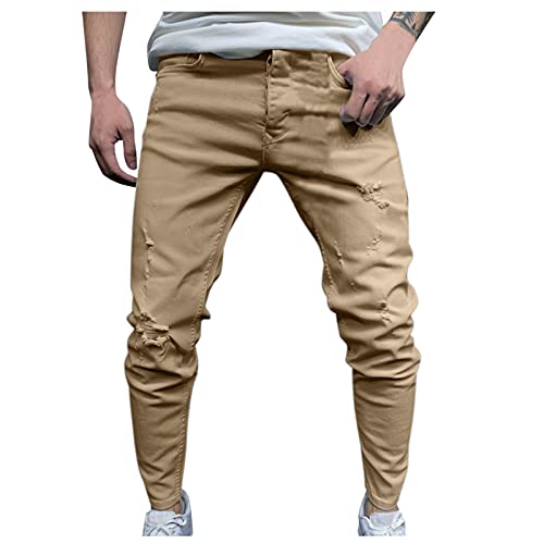 DRESCOKLJ Jeans da uomo Regular Fit Bootcut Jeans Jeans Denim Stretch Cotone Nero Blu Denim Jeans Uomo Washed Denim Jeans, cachi, M