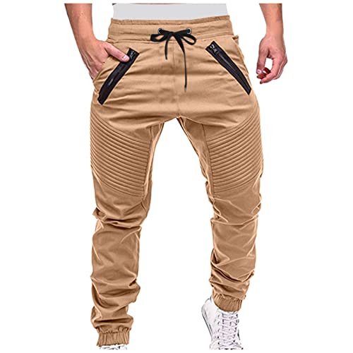 DRESCOKLJ Pantaloni chino da uomo in tessuto slim fit, pantaloni chino in cotone da uomo, leggeri, adatti per il tempo libero, vestibilità regolare, cachi, XL