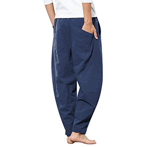 DRESCOKLJ Pantaloni estivi leggeri da uomo, per il tempo libero, lunghi, leggeri, estivi, da spiaggia, da uomo, casual, con tasche laterali, moderni pantaloni in cotone, Blu, M