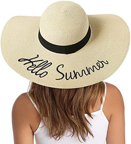 DRESHOW Donne Protezione Solare Cappello da Sole UV Paglia da Cappello Della Cappello da Spiaggia Estate Cappello di Paglia Cappuccio UPF 50