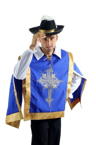 Prezioso costume,composto da mantellina, camicia, pantaloni, (con stivaloni-imitazione) e cappello - affinchè tutto sia davvero perfetto, dovete ora imparare a tirare di scherma come D'Artagnan