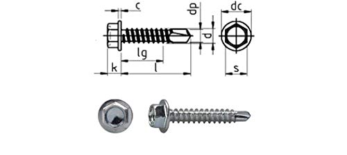 Dresselhaus, 0/6037/001/4,2/22,0/ /01, Viti autoforanti, a testa esagonale con collare-K, 4,2 x 22 mm, zincati, 1000 pezzi