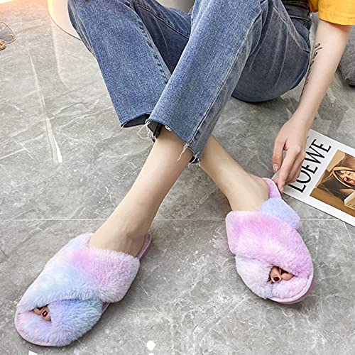 Dressfan Ciabatte Donna Pantofole Sandali Punta Aperta da Casa Piatto Tenere Caldo Peluche Pelliccia Antiscivolo Soffice Suola di Gomma per Interno e Esterno,Multicolore,38-39