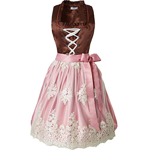 Dressforfun 900616 Donna Miniabito Tirolese, Grembiule in Pizzo Motivo Floreale, Marrone & Rosa -Diverse Misure (S| Nr. 302980)