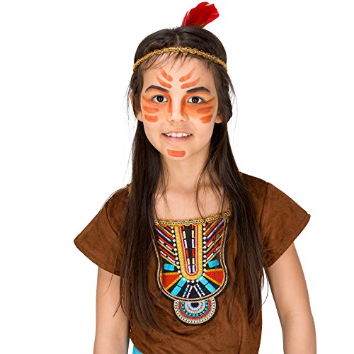 Dressforfun Costume da Ragazza - Indiana Piccola Volpe | Raffinato Abito | incl. Magnifica Cintura e Fascia per Capelli con Penne (8-10 anni | No. 300610)