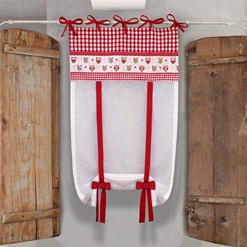 Dressing Home Tenda Finestra Country Chic Gufetti 60 x 150 Colore Bianco Rosso