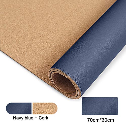 Dricar, tappetino per il mouse, grande, multifunzionale, per gaming e ufficio, impermeabile, in pelle PU, ultra sottile, ideale per ufficio/casa (blu scuro + sughero), 70 x 30 cm